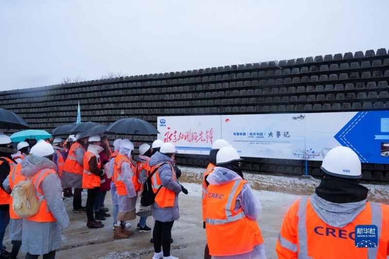 11月30日,匈牙利羅蘭大學中文系師生在匈牙利陶克肖尼參觀匈塞鐵路施工現(xiàn)場。