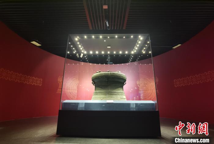《五彩八桂——廣西民族文化展》2日在太原市博物館開展,圖為東漢年間的銅鼓。中新社記者 胡健 攝