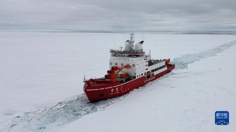 12月3日,“雪龍2”號(hào)正在開辟航道(無人機(jī)照片)。