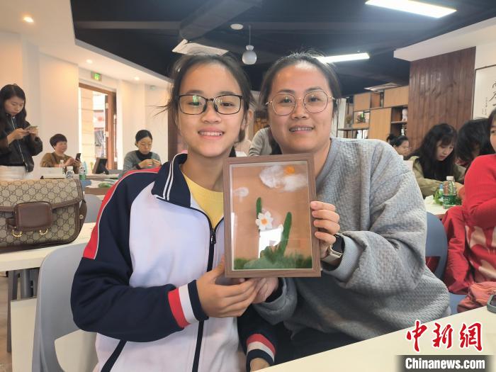 2日,“鄉(xiāng)情拳拳·親情綿綿”——漳臺(tái)青年棉花畫非遺技藝體驗(yàn)活動(dòng)在福建漳州古城舉行。圖為參與者展示親手制作的棉花畫。薌城區(qū)臺(tái)聯(lián)供圖