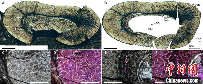 “華北克拉通翼龍”第二翼指骨骨干位置組織切片,顯示其相對較厚的骨壁以及不完整的生長停滯線。中國科學院古脊椎所 供圖