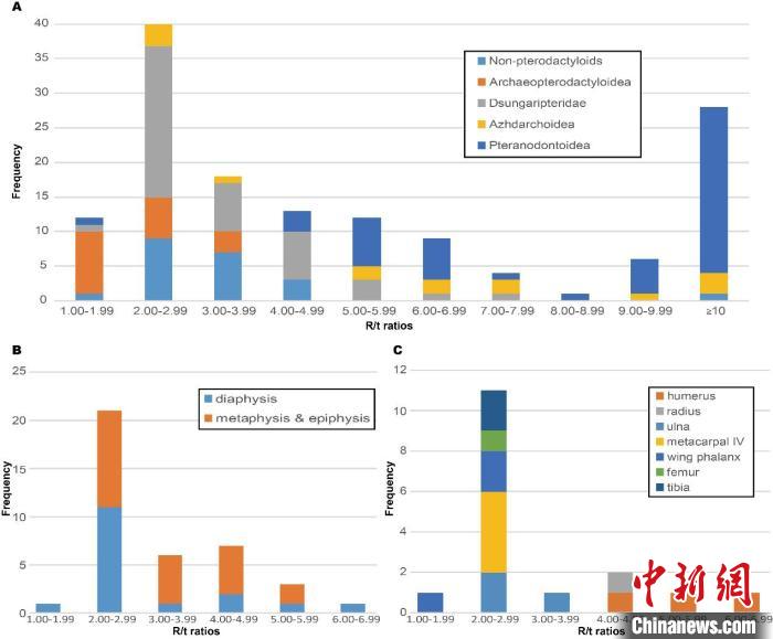 翼龍類群骨壁相對厚度統(tǒng)計直方圖。中國科學院古脊椎所 供圖