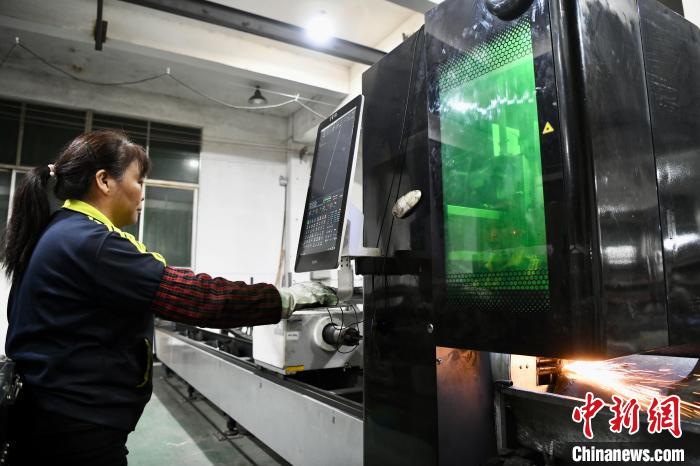 福州弘博工藝品產(chǎn)業(yè)園里,工人操作自動化智能生產(chǎn)設備。中新網(wǎng)記者 王東明 攝