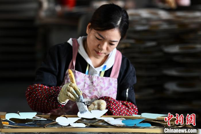 工人在車間給產(chǎn)品手工上涂料。中新網(wǎng)記者 王東明 攝