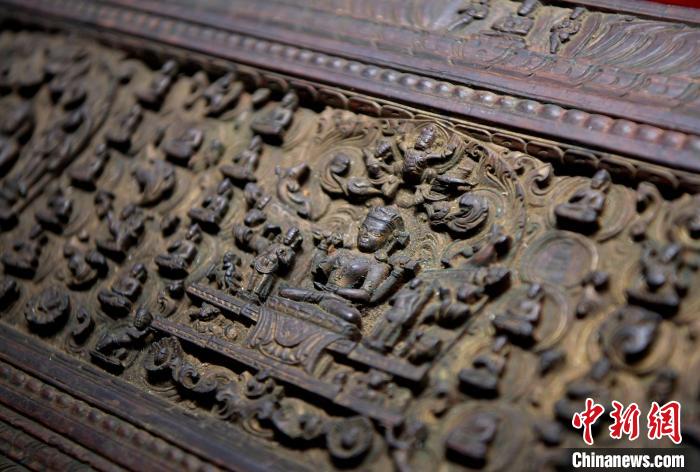 圖為日喀則博物館展出的明代般若佛母經(jīng)夾板。李林 攝