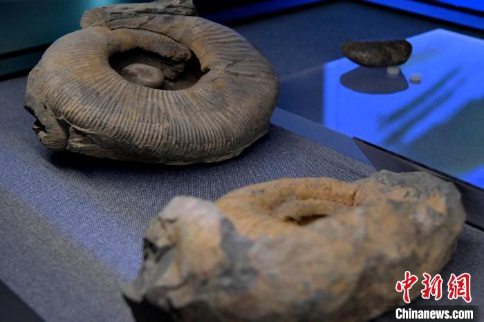 圖為日喀則博物館展出的鸚鵡螺化石。李林 攝