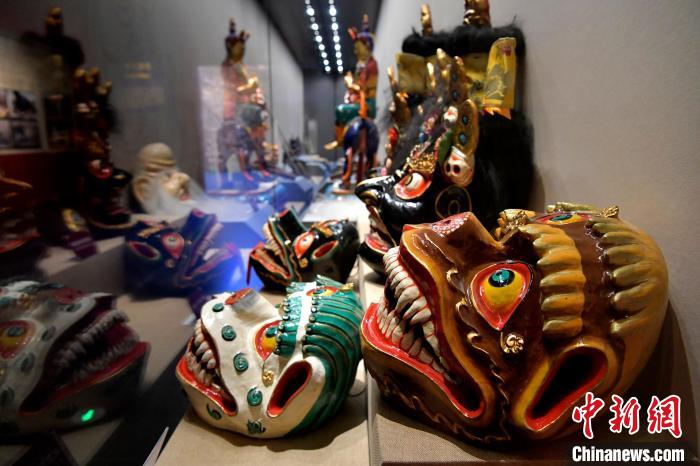 圖為日喀則博物館展出的泥塑面具。李林 攝
