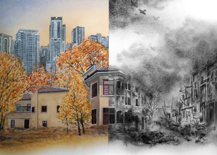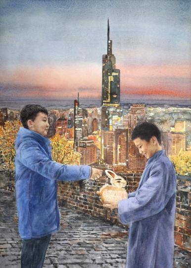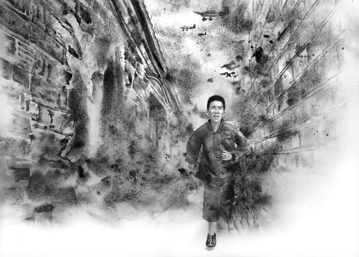 觸發(fā)楊筱艷寫作《寧生,寧生》想法的,是2017年12月紀(jì)念館官方微博上發(fā)布的一張海報(bào)。海報(bào)上有兩個(gè)孩子,一個(gè)在1937年,一個(gè)在2017年,他們相隔時(shí)空對望?!斑@幅繪畫深深觸動(dòng)了我,也給了我寫作靈感,故事的梗概就是兩個(gè)不同年代的兒童在1937年和2017年的不同經(jīng)歷,人物的名字皆為‘寧生’?!?/p>