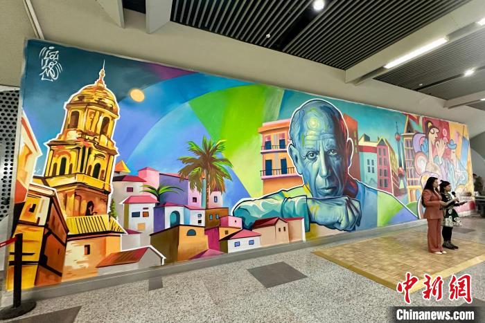 此幅大型墻繪作品描繪了上海與馬拉加兩座城市的代表性風景,并融入了對藝術(shù)大師畢加索的致敬。