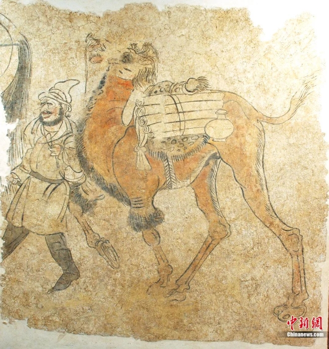 中新社記者:胡人牽駝載絲壁畫的發(fā)現(xiàn)有何意義?