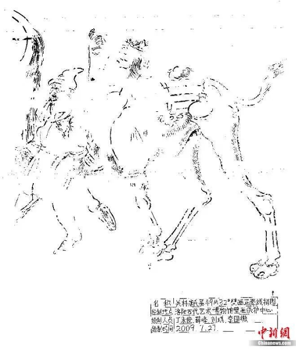 出行隊伍局部線描。洛陽古墓博物館供圖