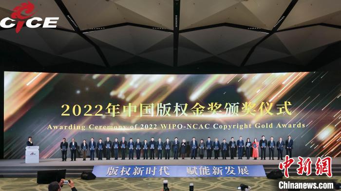 2022年中國版權(quán)金獎?lì)C獎儀式在開幕式上舉行。第九屆中國國際版權(quán)博覽會組委會供圖