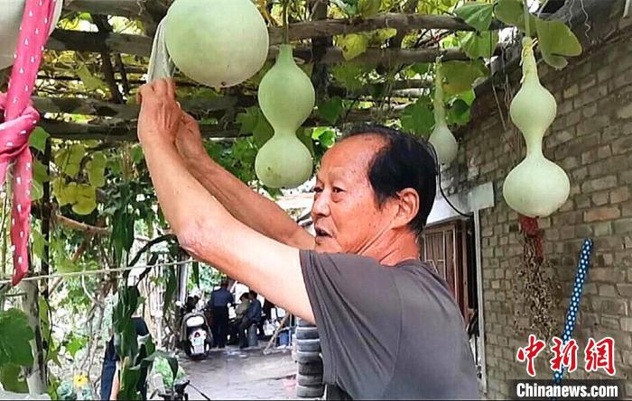 為得到形狀滿意的葫蘆,播種、育苗、搭架,潘耀先都親力親為(資料圖)。劉潤瑜攝