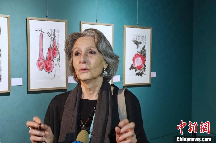 意大利國(guó)際藝術(shù)聯(lián)合會(huì)主席勞拉·巴巴里尼分享觀展感受。中新網(wǎng)記者 孫虹 攝