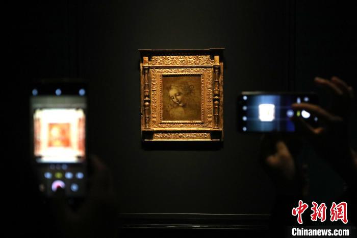 達(dá)·芬奇真跡《頭發(fā)飄逸的女子》在上海博物館展出。中新網(wǎng)記者 張亨偉 攝