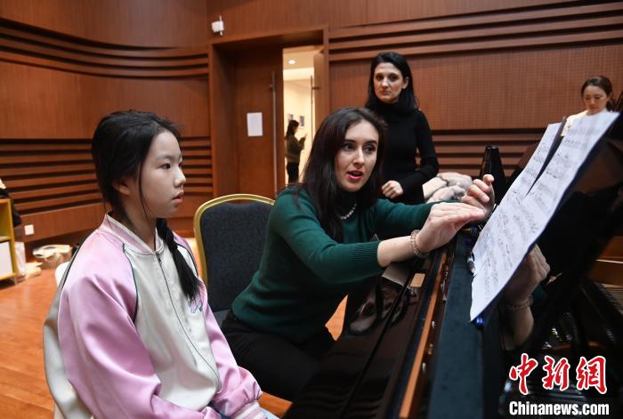 中新網(wǎng)廊坊12月10日電 (宋敏濤 楊雅琪)10日,在河北省廊坊市絲綢之路國際藝術交流中心的國際課堂,來自羅馬尼亞的鋼琴家辛茲安娜·米爾切亞正在耐心地指導孩子們的鋼琴彈奏技巧?!昂荛_心再次來到絲綢之路國際藝術交流中心,希望通過自己的授課可以讓孩子更深刻感受鋼琴的美妙,也希望能有更多機會和更多中國朋友進行音樂文化上的溝通與交流?!毙疗澃材取っ谞柷衼喺f。