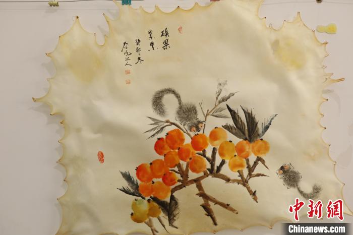 12月12日,閆立國創(chuàng)作的皮畫作品《碩果累累》。尚長治 攝