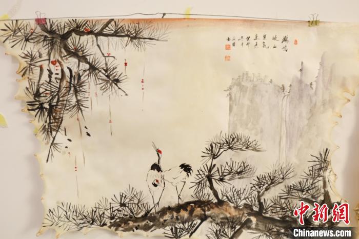 12月12日,閆立國創(chuàng)作的皮畫作品《鶴鳴岐山》。尚長治 攝