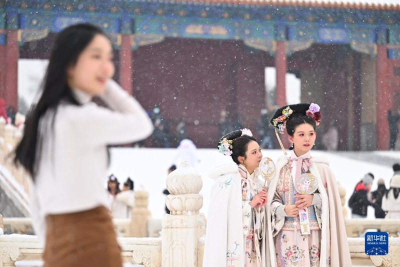 當日,北京再次迎來大雪天氣,不少游客前往故宮游玩賞雪。