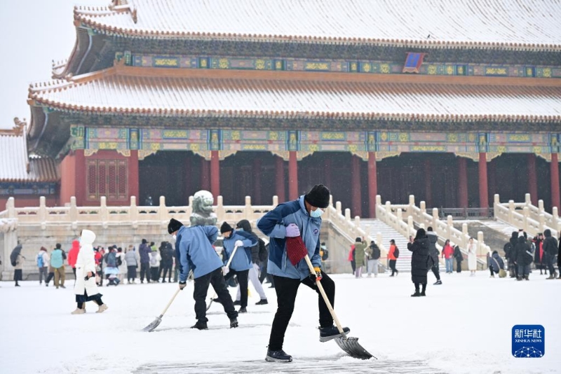 12月13日,故宮工作人員鏟雪清道。