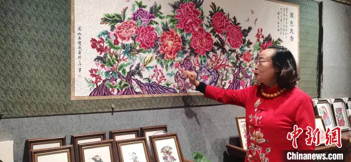 圖為周淑英介紹她創(chuàng)作的作品。陳林攝