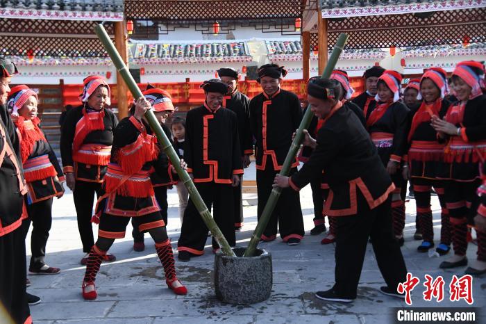 廣西金秀民眾舂糍粑慶祝瑤族盤王節(jié)(資料圖)。陶振英攝