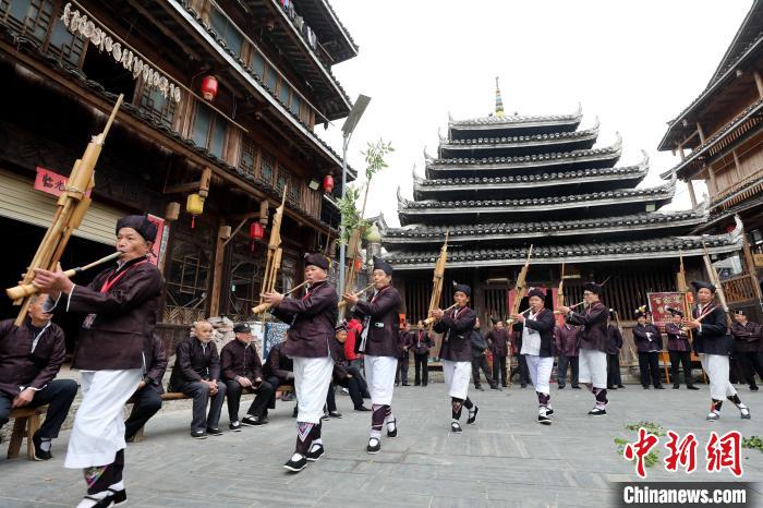 12月13日,農歷十一月初一,是廣西三江侗族自治縣傳統(tǒng)節(jié)日侗年節(jié)。三江縣林溪鎮(zhèn)程陽八寨景區(qū)舉辦月也活動,邀請該鎮(zhèn)冠洞村、平鋪村等數(shù)支蘆笙隊歡聚一堂,以蘆笙踩堂、賽蘆笙、多耶、百家宴等豐富節(jié)目,歡慶侗年節(jié)到來,侗鄉(xiāng)多彩風情吸引眾多村民及游客前往觀賞體驗。
