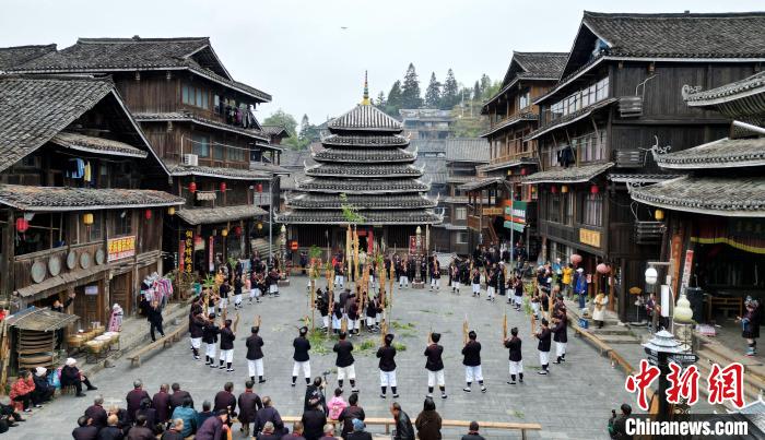 圖為村民在表演蘆笙踩堂。莫江泉 攝