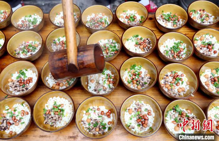 圖為在三江侗族自治縣林溪鎮(zhèn)程陽八寨景區(qū)拍攝的侗族打油茶。龔普康 攝