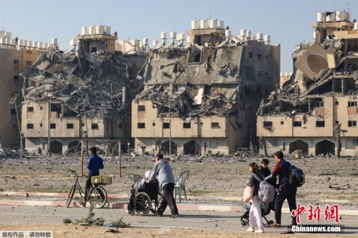 當(dāng)?shù)貢r間12月2日,加沙地帶南部汗尤尼斯Hamad居民區(qū)的民眾逃離家園。