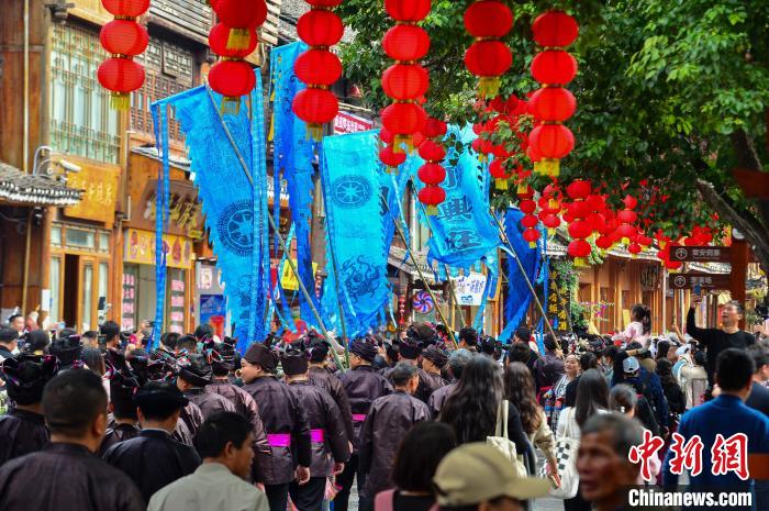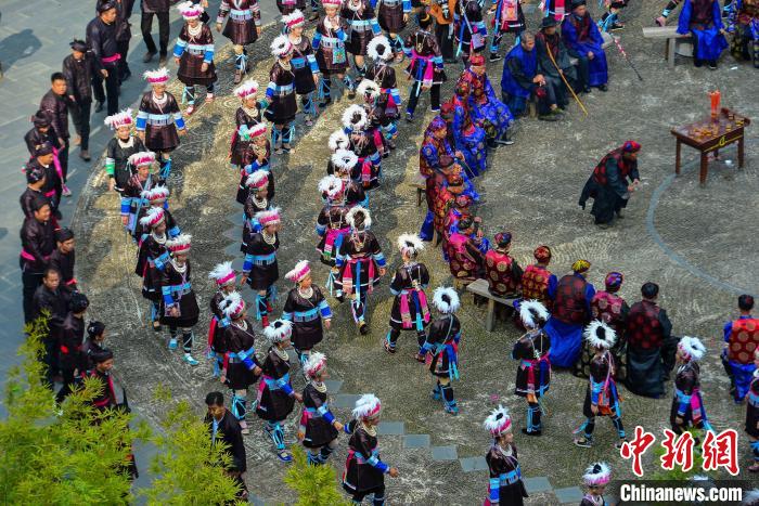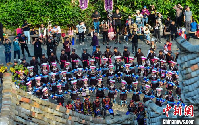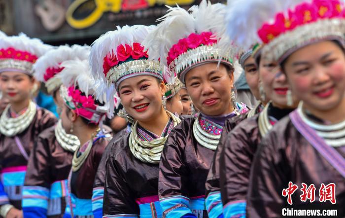 身著盛裝的侗族同胞在黎平縣肇興侗寨參加侗年巡游活動(dòng)。盧忠南 攝