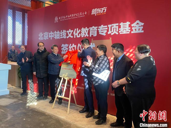 北京中軸線文化教育專項(xiàng)基金18日在北京成立,圖為嘉賓為北京中軸線文化教育專項(xiàng)基金揭牌。中新網(wǎng)記者 趙明 攝