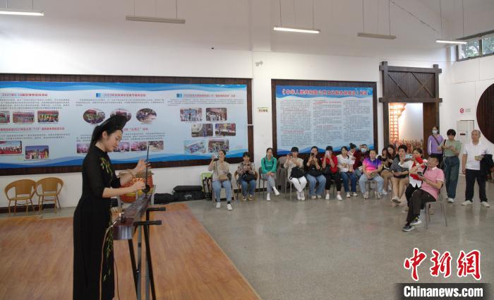 圖為阮媛媛在給游客展示獨(dú)弦琴藝術(shù)。蔣雪林 攝