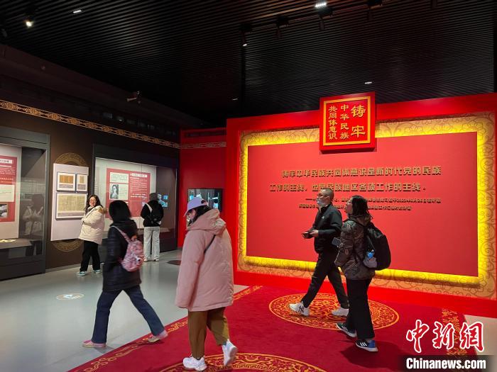 民眾在北京市民族文化宮二樓參觀“紅星耀天山——中國共產(chǎn)黨領(lǐng)導(dǎo)新疆革命文物故事展”。吳亞凡 攝
