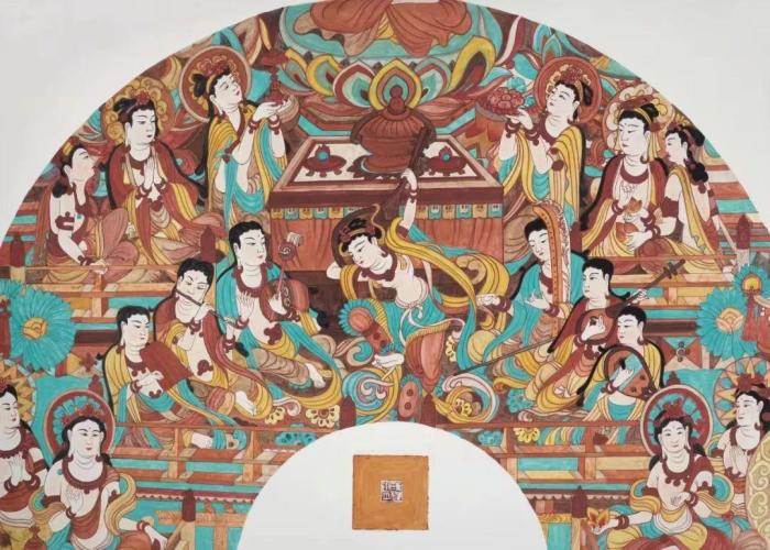 藝術(shù)的道路永無止境。2022年暑期,譚小平利用休假時間跟隨天津美術(shù)學(xué)院牽頭的一個項目到敦煌研習(xí)壁畫。隨著對線描造型、材料分析、色彩運用、畫面處理等系統(tǒng)地深入探究,譚小平對敦煌壁畫的認(rèn)識和理解不斷提升,成為該項目中產(chǎn)出作品數(shù)量最多的一位。