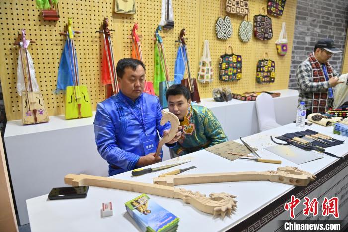 記者在參觀時還認識了一位制作馬頭琴的手藝人,他安靜地坐著,僅用幾把銼刀就在木頭上雕刻出栩栩如生的馬頭。展位上擺著的一排馬頭琴,馬頭形態(tài)各異,有立鬃、披鬃、飛鬃,有倔強之姿,有嘶鳴之狀,有奔跑之態(tài)。