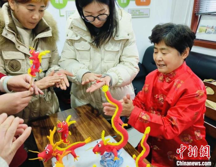 中新網(wǎng)徐州12月20日電 (朱志庚 王月蒙)2024年甲辰龍年即將到來,江蘇省徐州市鼓樓區(qū)非遺項目傳承人提前設(shè)計創(chuàng)作龍年主題作品。近日,非遺項目傳承人們來到鼓樓區(qū)九里新苑社區(qū)新時代文明實踐站開展非遺體驗活動,為大家?guī)砣诤戏沁z技藝與龍年生肖的作品,一展“指尖上”的年味。
