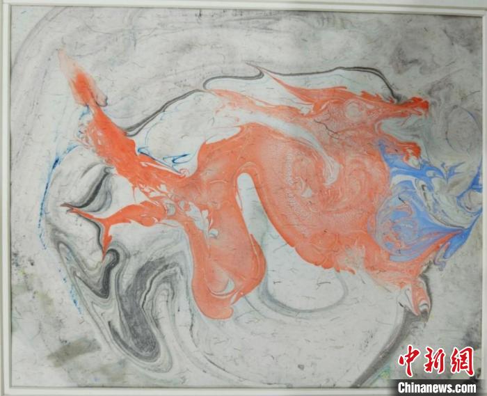 水拓畫作品《游龍戲水》。王月蒙攝