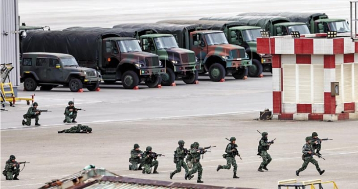 圖:美國政客炮制相關(guān)法案,企圖“合法化”美臺軍事勾連。圖為臺軍早前舉行演練。\資料圖片