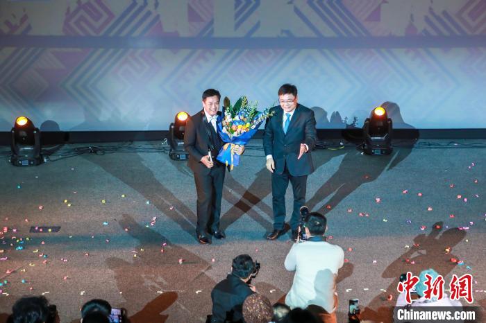 圖為頒發(fā)中國—東盟電影共創(chuàng)大使榮譽(yù)獎(jiǎng)杯現(xiàn)場。主辦方供圖