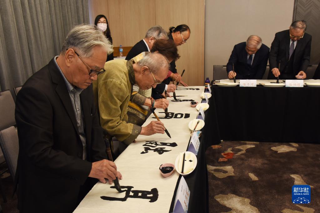 12月8日,由兩岸有關(guān)機構(gòu)共同主辦的2023海峽兩岸年度漢字評選結(jié)果在臺北揭曉,“融”字以最高票當選。這是臺灣中華書學(xué)會的多名書法家和參會嘉賓寫下不同字體的“融”字。新華社記者 劉斐 攝