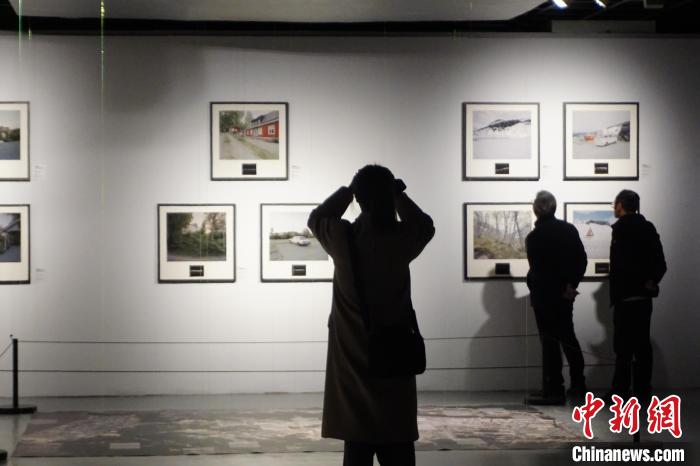 除了靜態(tài)的作品展示,在攝影展廳,還有一處動(dòng)態(tài)的作品。一名青年攝影師將實(shí)物與圖片相結(jié)合,以更為立體的方式將二維平面的攝影作品用裝飾藝術(shù)形式呈現(xiàn)。