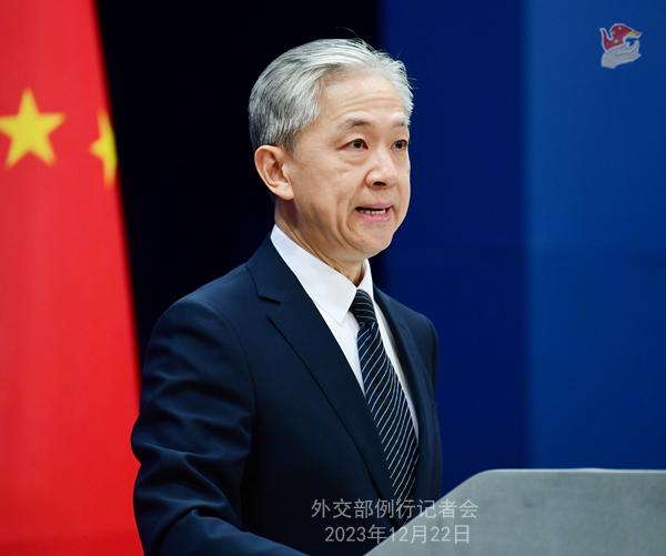 中新網(wǎng)北京12月22日電 (記者 郭超凱)中國(guó)外交部發(fā)言人汪文斌22日主持例行記者會(huì)。