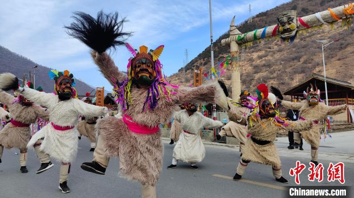 12月22日,2023王朗白馬風(fēng)情節(jié)在四川省綿陽(yáng)市平武縣白馬藏族鄉(xiāng)開幕。開幕式前,進(jìn)行了獨(dú)具特色的民俗風(fēng)情展演——跳曹蓋。