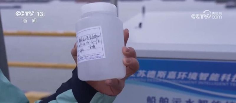 您看,這會(huì)在江面上不少大貨船旁都有一艘小船緊挨著它,這艘小船是污染物集中接收船,就相當(dāng)于長(zhǎng)江上的“垃圾回收站”,連接兩艘船的管道后,船上生活污水即可被回收到接收裝置中。您看,我手里這杯清澈的水就是集中處理后的污水,目前達(dá)到了一級(jí)A類(lèi)的標(biāo)準(zhǔn),也將會(huì)被重新直排回長(zhǎng)江。