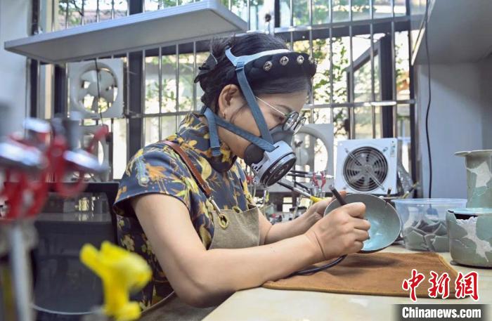 杭州市文物考古研究所所長胡利紅修復瓷器。杭州市文物考古研究所 供圖