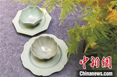 修復好的由杯碟組成的南宋勸酒器。張之冰 攝