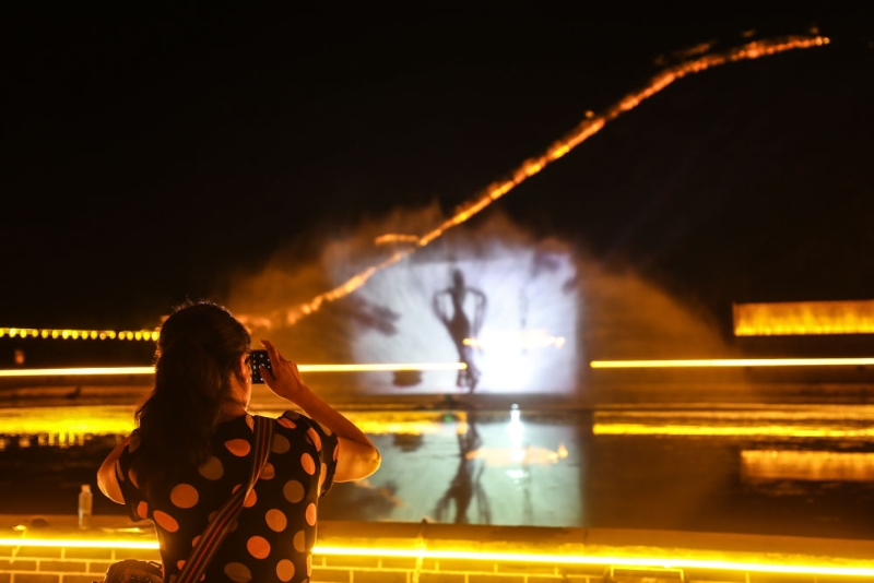 2023年6月30日,游客在遼寧省葫蘆島市綏中縣九門口長城景區(qū)觀看水幕電影。新華社記者 潘昱龍 攝