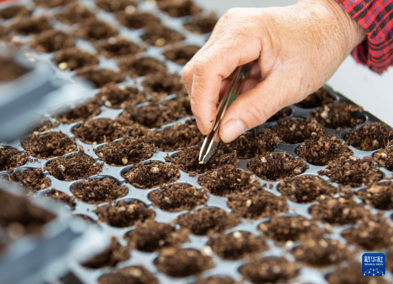 12月22日,農(nóng)民在貴州省羅甸縣沫陽鎮(zhèn)蔬菜育苗基地內(nèi)播種。
