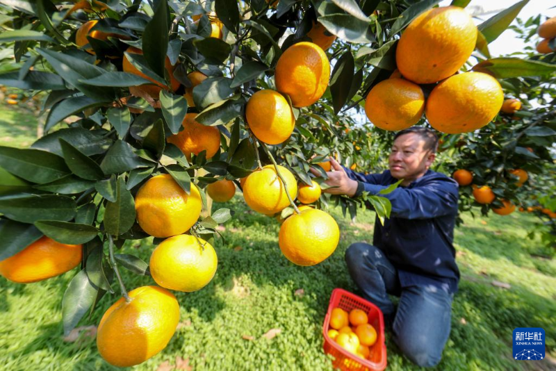 12月22日,果農(nóng)在貴州省開陽縣云開街道石頭村采摘柑橘。
